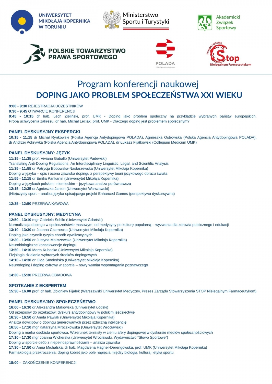 PROGRAM KONFERENCJI „DOPING JAKO PROBLEM SPOŁECZEŃSTWA XXI WIEKU”