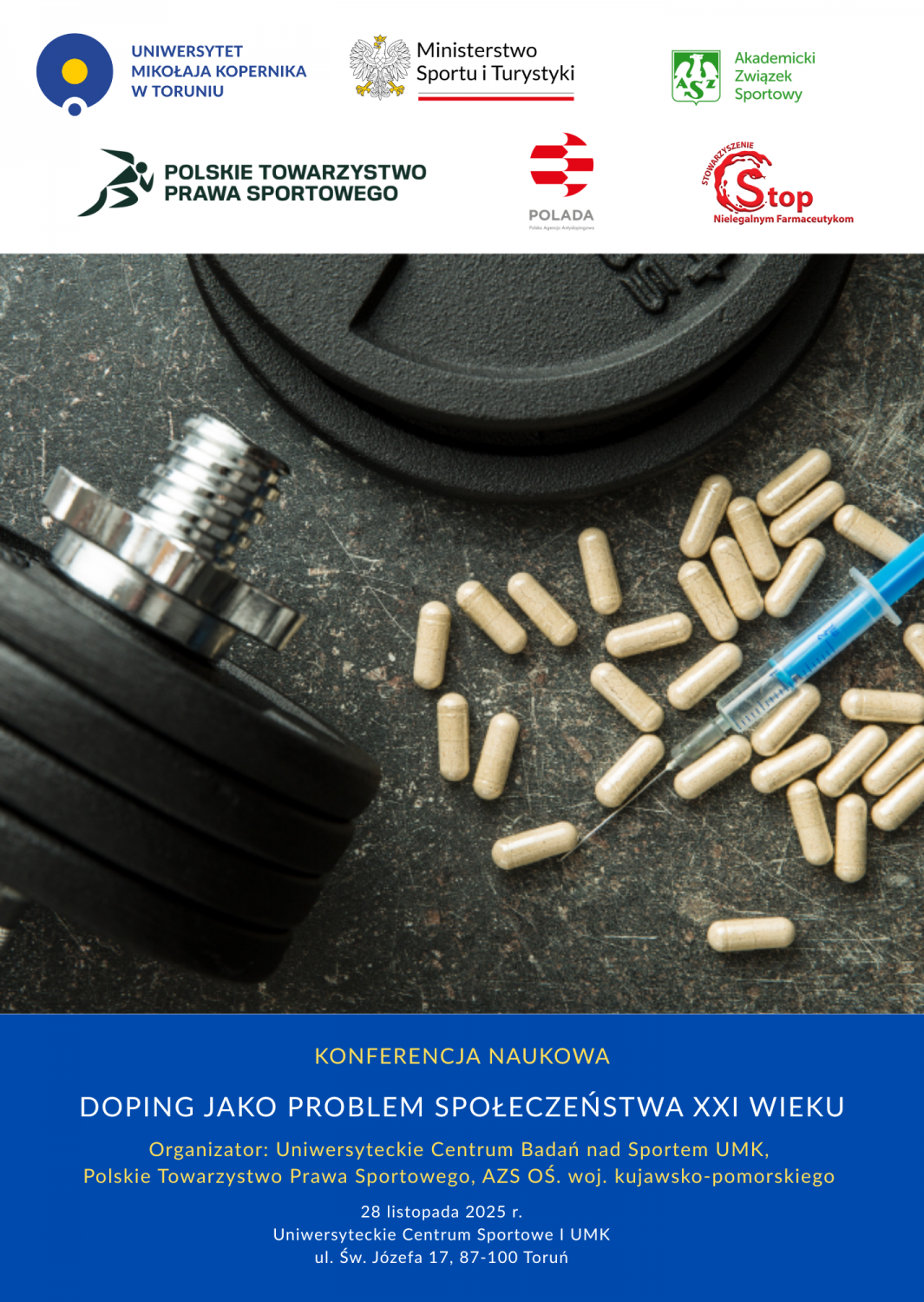 Dnia 28 listopada 2025 r. w Uniwersyteckie Centrum Sportowe UMK odbyła się interdyscyplinarna konferencja naukowa pt. „Doping jako problem społeczeństwa XXI wieku”.
